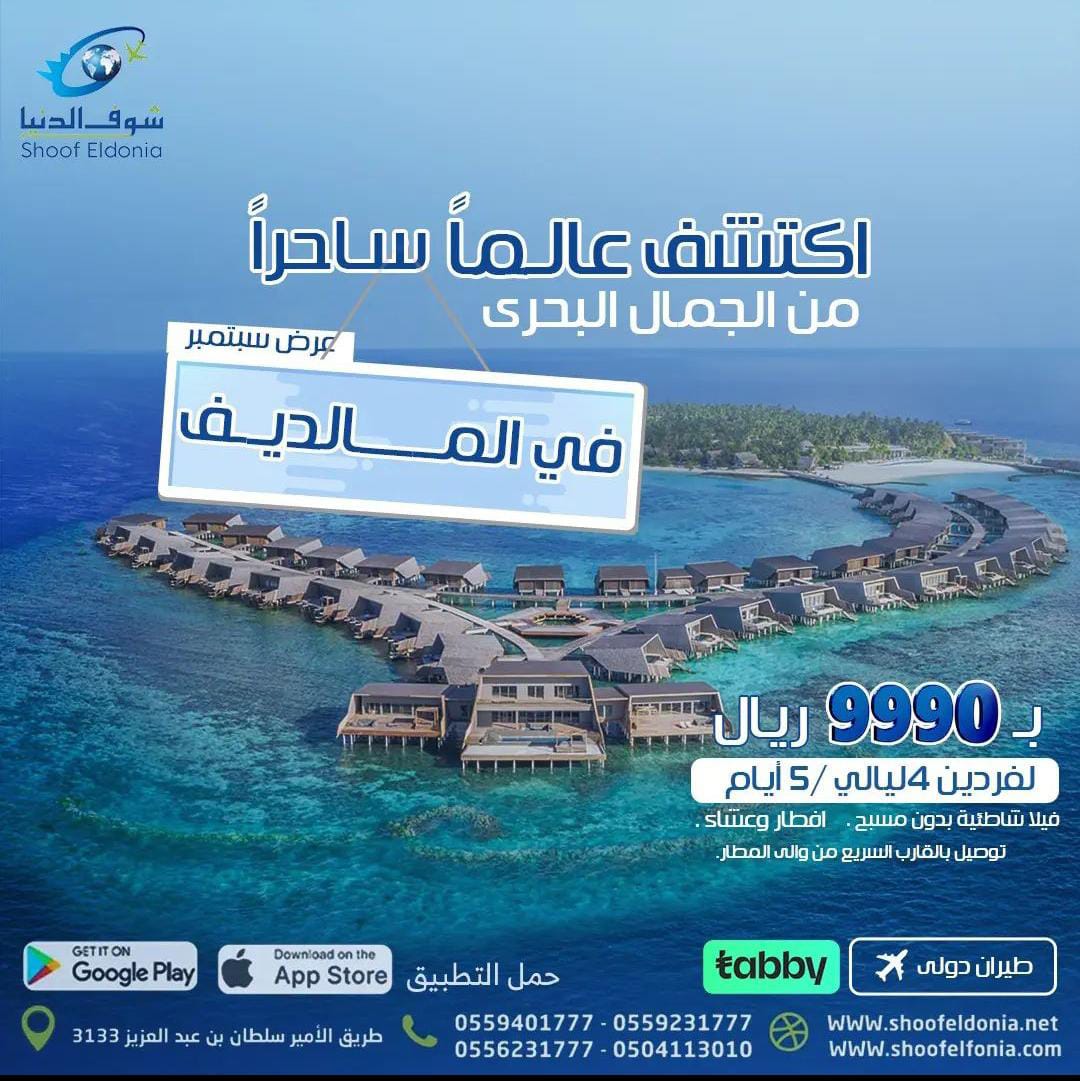 مع عرض سبتمبر اكتشف عالما ساحرا من الجمال البحري في المالديف مع المميزات فيلا شاطئية بدون مسبح و افطار وعشاء و توصيل بالقارب السريع من و الي المطار