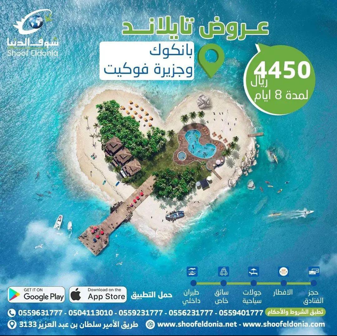 عروض تايلاند بانكوك وجزيرة فوكيت لمدة 8 أيام واستمتع بالمميزات حجز الفنادق والافطار وجولات سياحية و سائق خاص و طيران داخلي